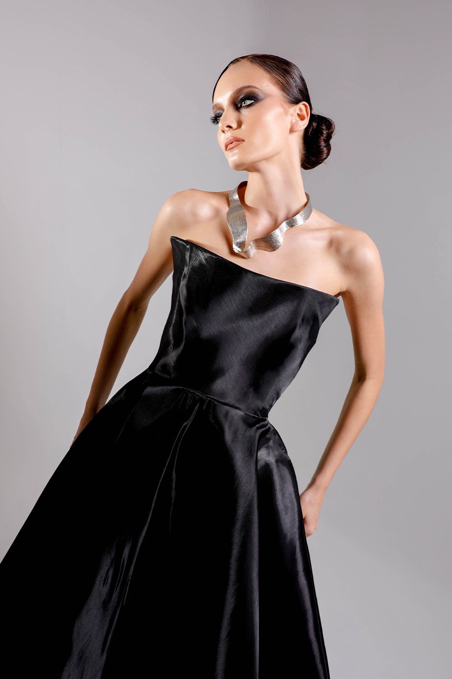 Step into elegance with our gracefully designed midi gown, meticulously crafted from premium-quality liquid organza. This gown embodies timeless sophistication, flowing beautifully with a luxurious texture that feels as stunning as it looks. Perfect for both formal evenings and elegant daytime occasions, this piece is a must-have for anyone looking to make an unforgettable impression.
