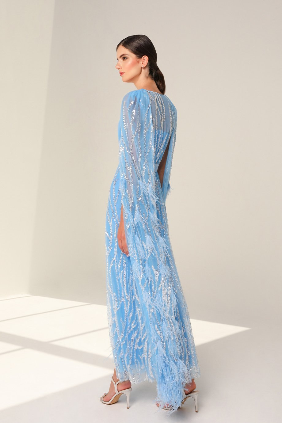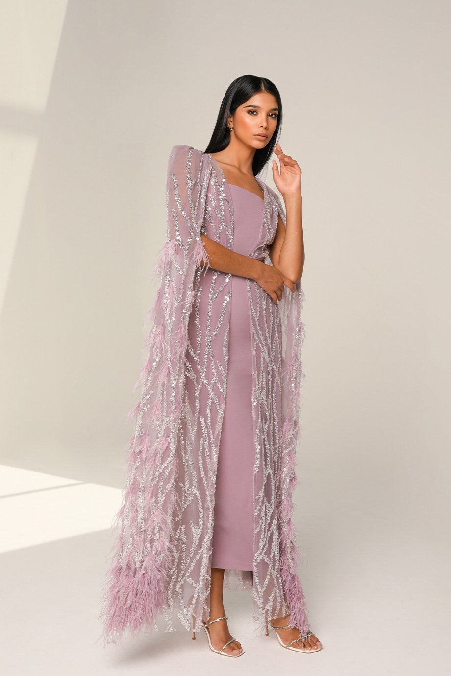 This Maxi-length cape dress is as functional as it is glamorous. While the Non-Stretchy Outer Fabric highlights its premium quality and fit, the stretchy inner layer provides mobility and ease. Whether you’re walking the red carpet or attending a gala, this dress combines beauty, comfort, and versatility in one exquisite design.