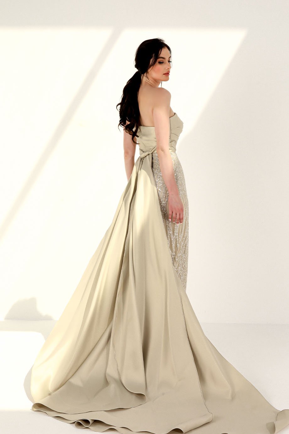 Whether you’re attending a gala, wedding, or evening soirée, this gown is your go-to choice for unparalleled elegance. The balance of subtle shimmer from the sequins and the rich texture from the tafta exudes sophistication, ensuring you leave a lasting impression. Pair it with statement accessories for an unforgettable look.