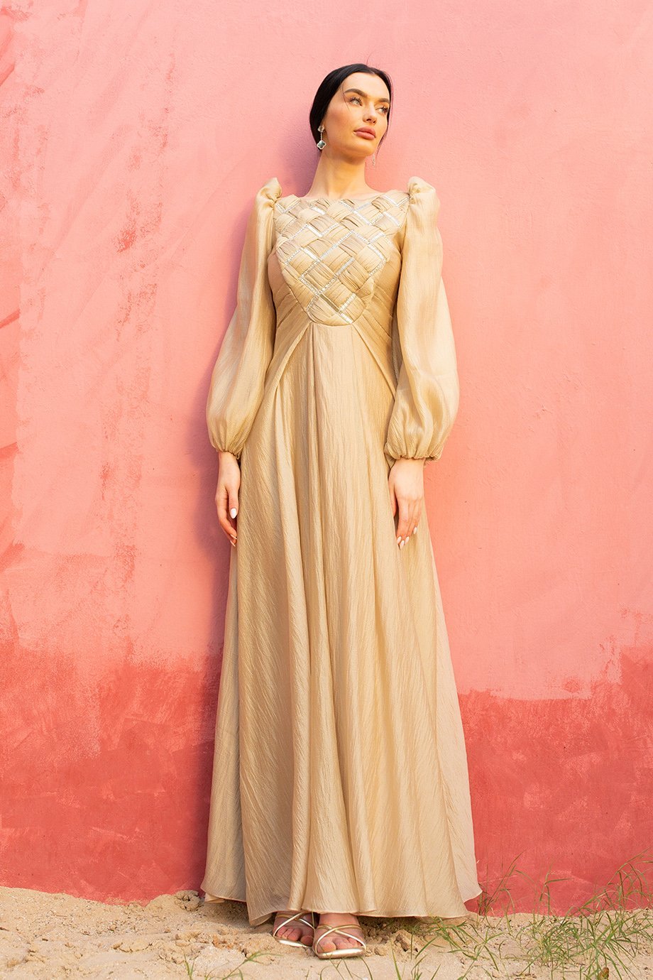 Elevate your look with the romantic poet sleeves that add a whimsical touch to the overall design. The soft balloon shape, paired with tailored cuffs, creates a perfect balance between vintage inspiration and modern aesthetics. This dress effortlessly transforms your wardrobe, making it a versatile choice for weddings, soirées, or any celebratory occasion.