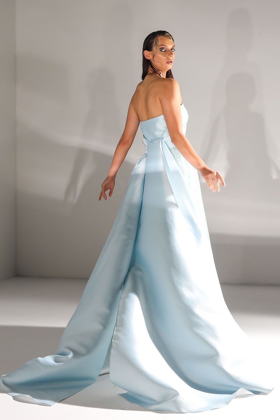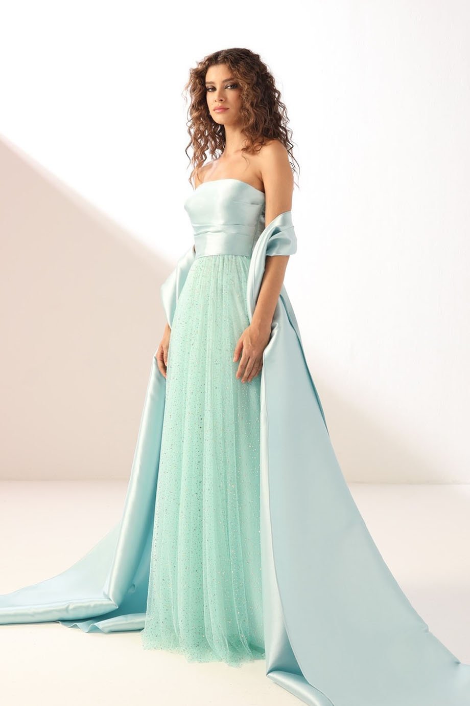 Experience luxury at its finest with our breathtaking evening-length dress, designed for those special nights where every detail matters. Featuring a straight-across gathered tafta neck, this design captures a timeless silhouette with a touch of modern sophistication. It’s the perfect choice for making an unforgettable impression at formal events, weddings, or galas.