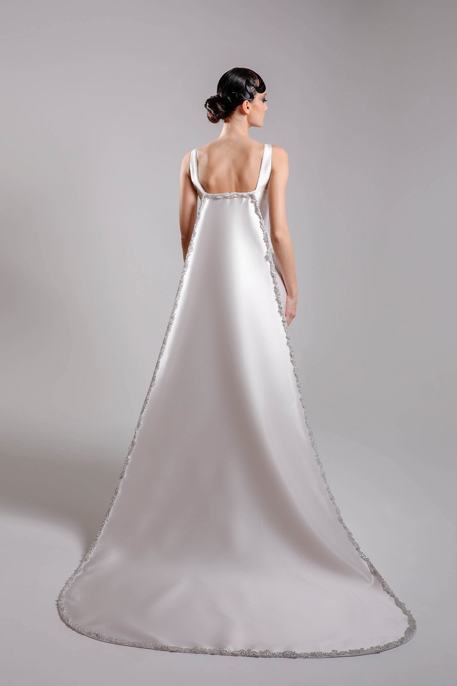 Indulge in the timeless elegance of our maxi pencil-cut dress, crafted from premium mikado fabric renowned for its structured yet smooth finish. This dress seamlessly blends sophistication and style, making it the perfect choice for formal events, weddings, or any occasion where you want to make a statement.