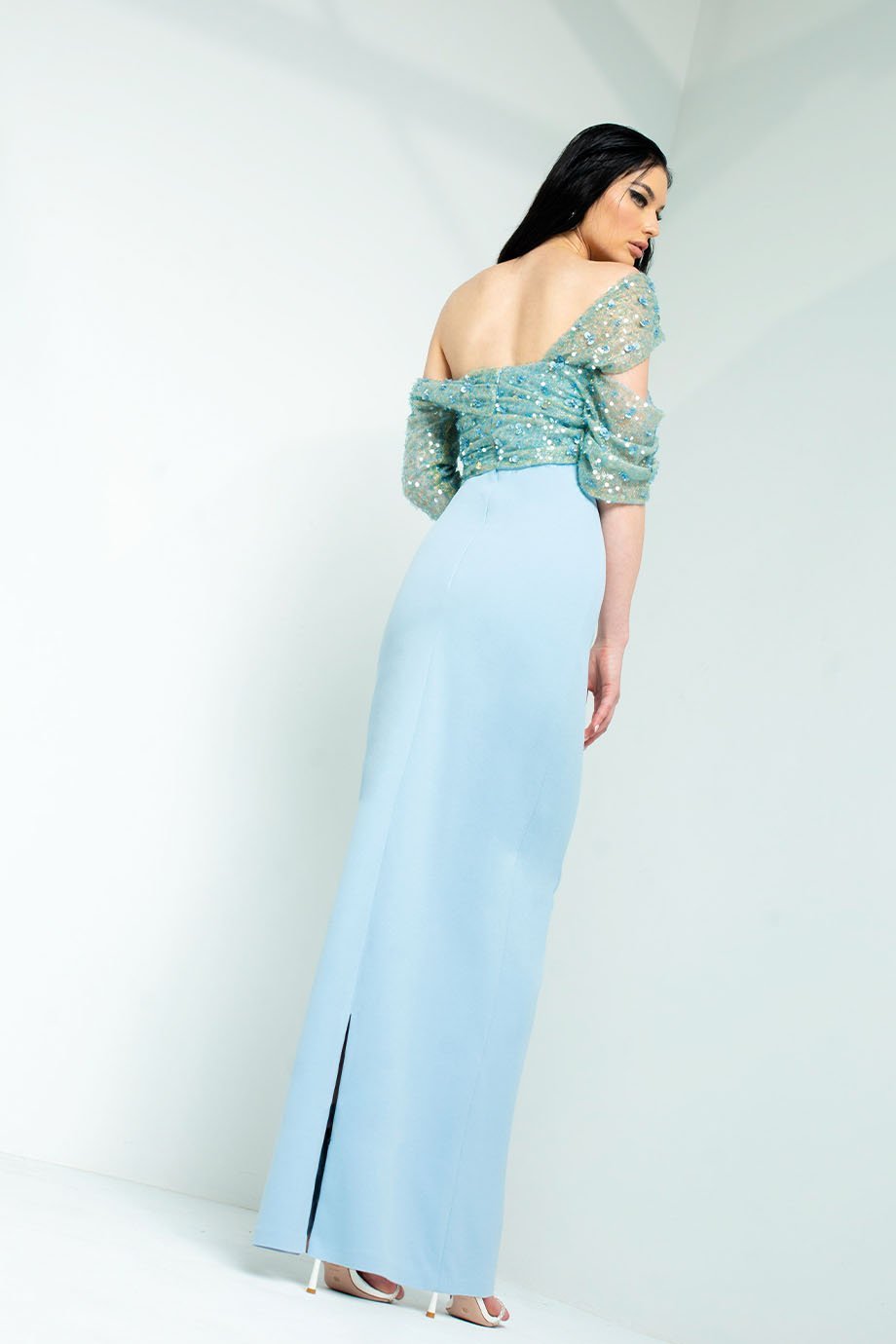 The one-sided longsleeve adds a unique touch that’s perfect for turning heads. Whether you’re attending a wedding, cocktail party, or gala, this dress offers a modern and chic twist on traditional evening wear. Pair it with statement jewelry or minimalist accessories to customize your look effortlessly.
