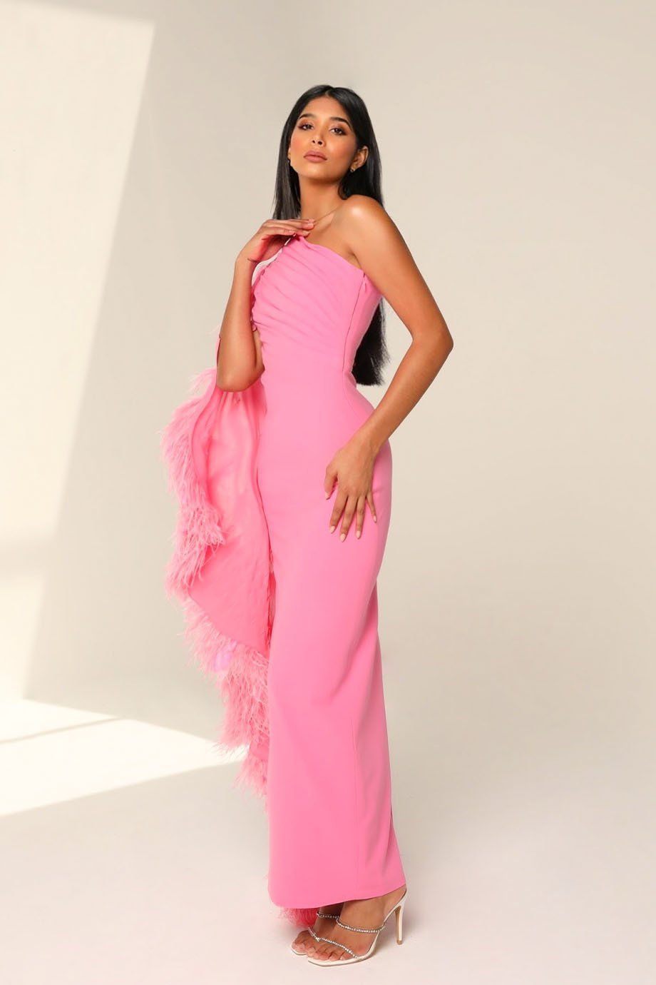 Step into elegance with our one-shoulder evening gown, thoughtfully crafted to elevate your fashion game. This exquisite piece features a gathered neckline design that accentuates your shoulder, adding a unique charm to your overall look. Whether it’s a gala, a wedding, or a formal event, this stunning gown is sure to turn heads.