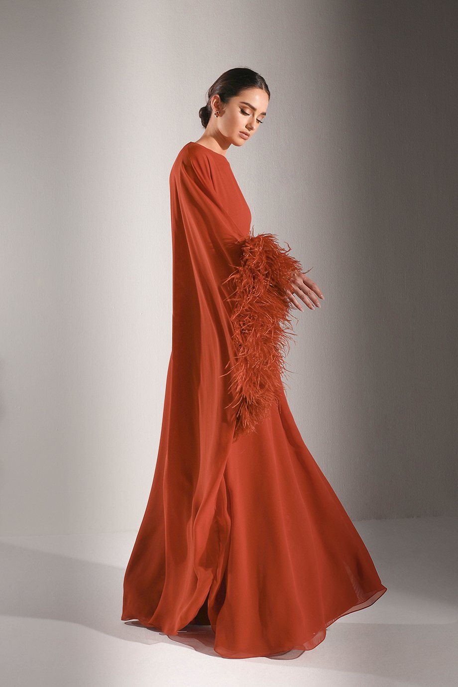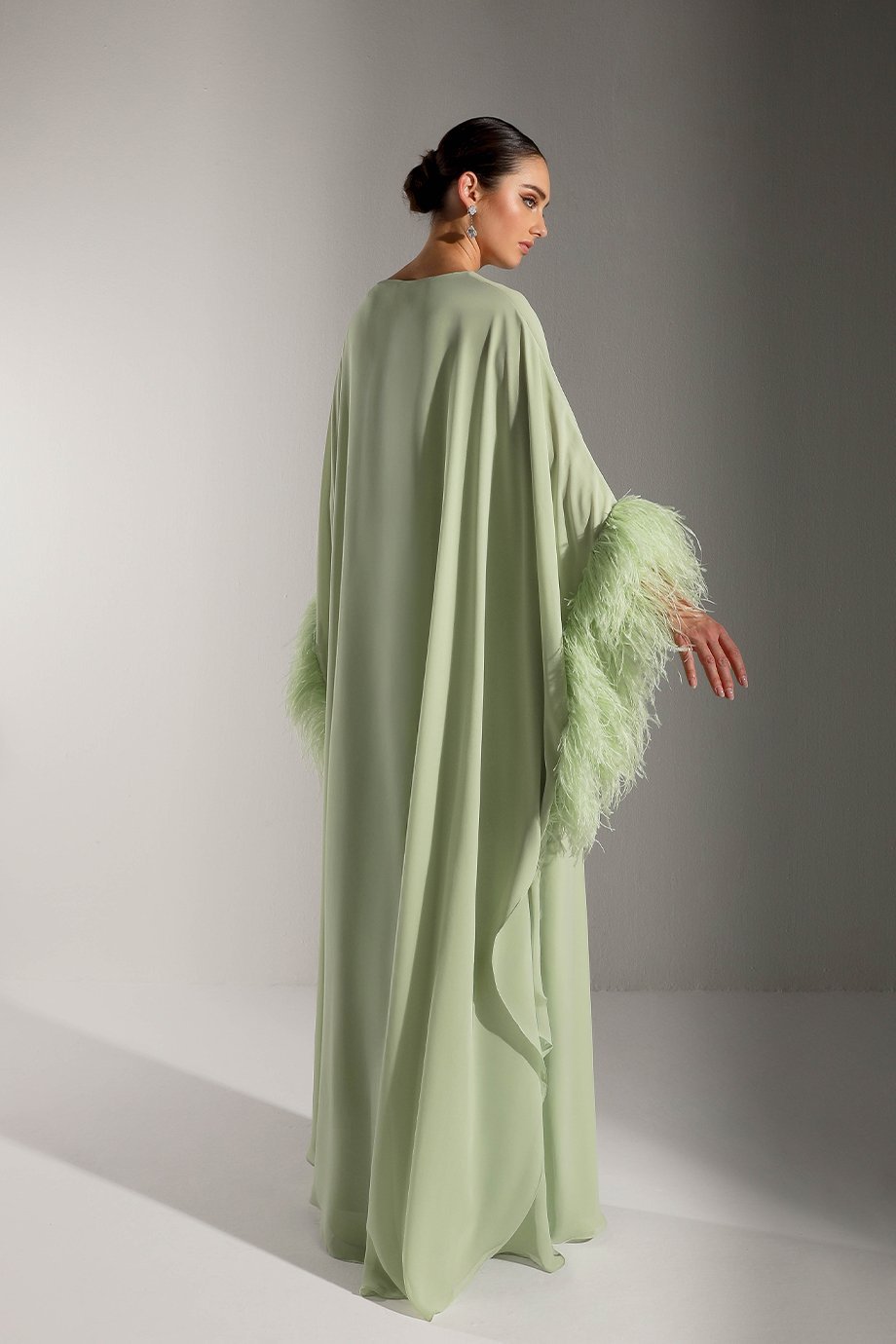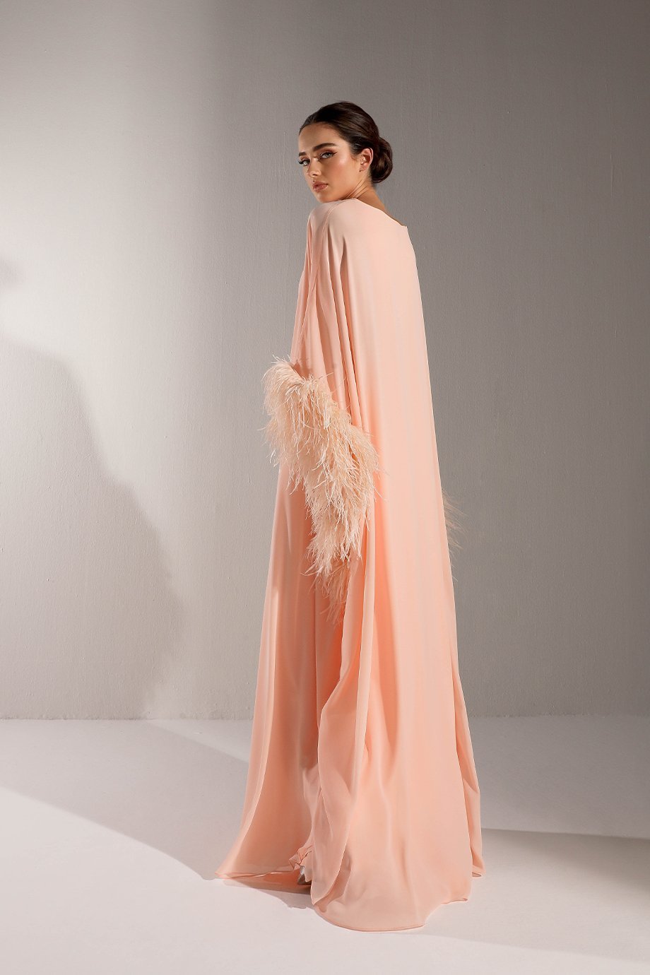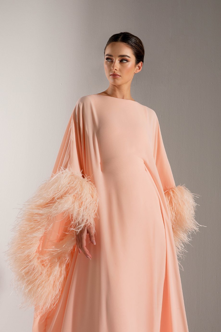 The delicate chiffon kaftan overlay added to this dress creates an ultra-feminine look. Light, airy, and effortless, the overlay adds movement and flow, ensuring gracefulness with every step you take. Whether walking into a room or taking center stage, this unique touch will have heads turning for all the right reasons.