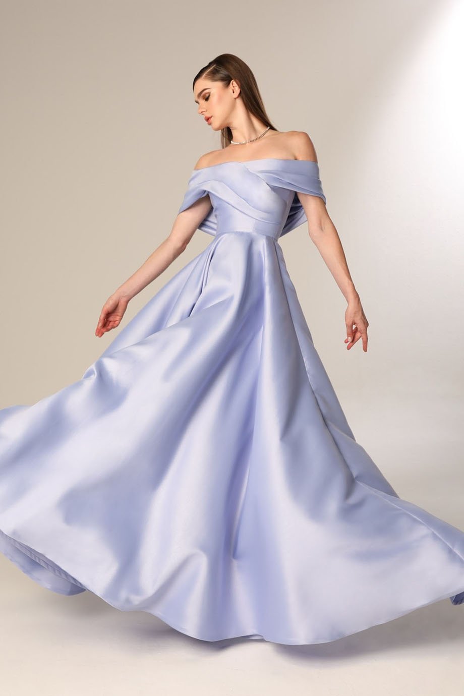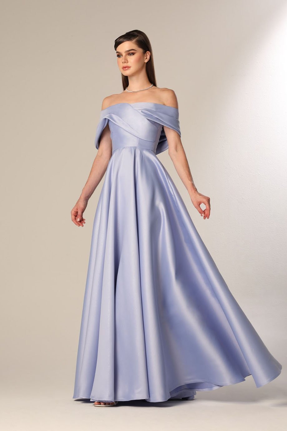 Make an unforgettable statement at your next event with our Gathered Tafta Off-Shoulder Evening Dress. Crafted meticulously, this dress combines modern sophistication with a classic silhouette, perfect for formal gatherings, weddings, or gala dinners. Its off-shoulder neckline complements your collarbone, giving you a refined and graceful look that is sure to turn heads.