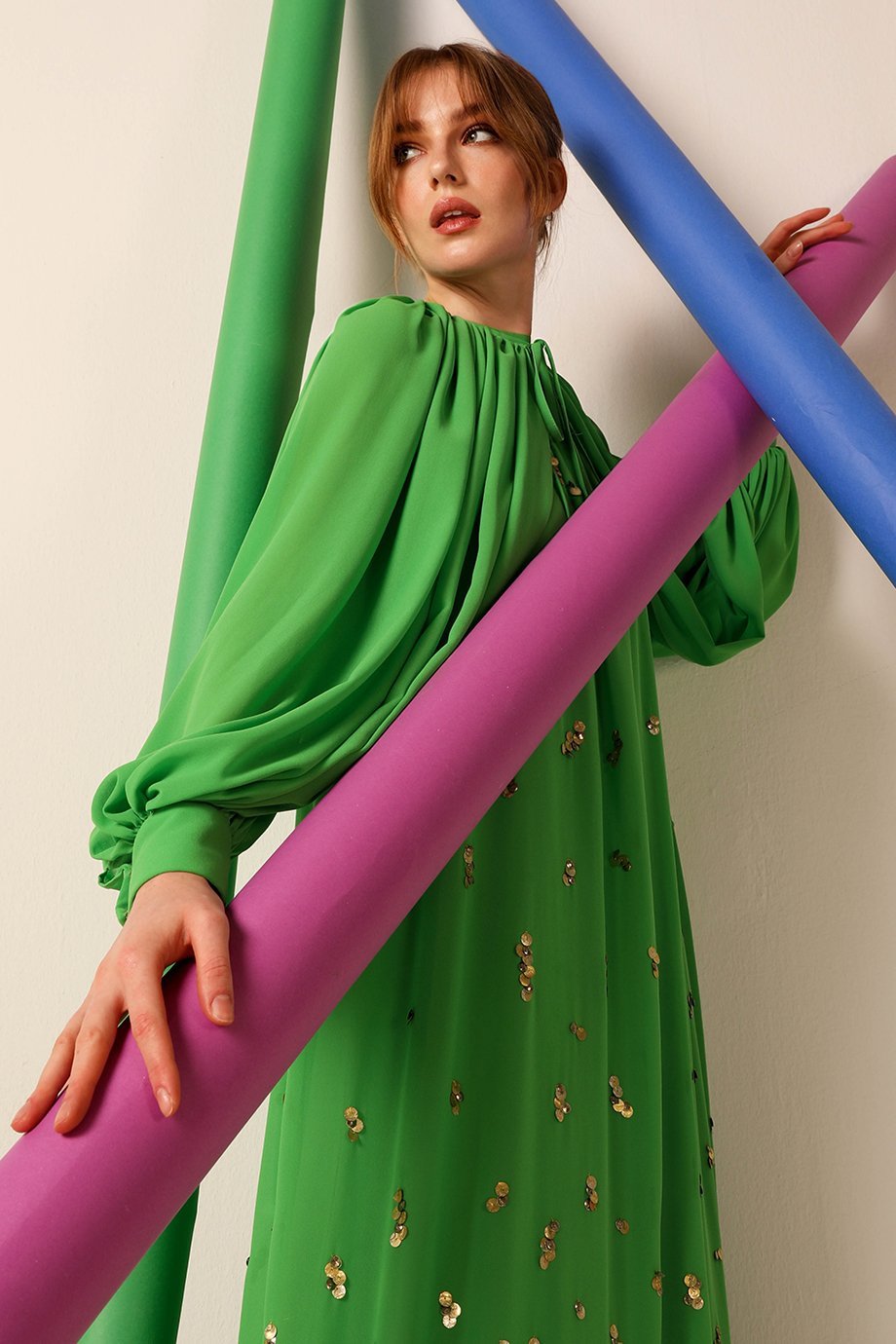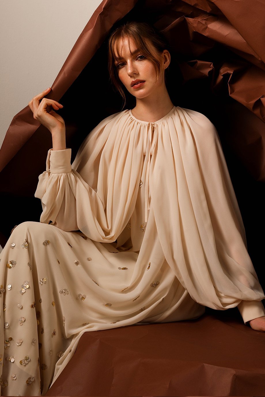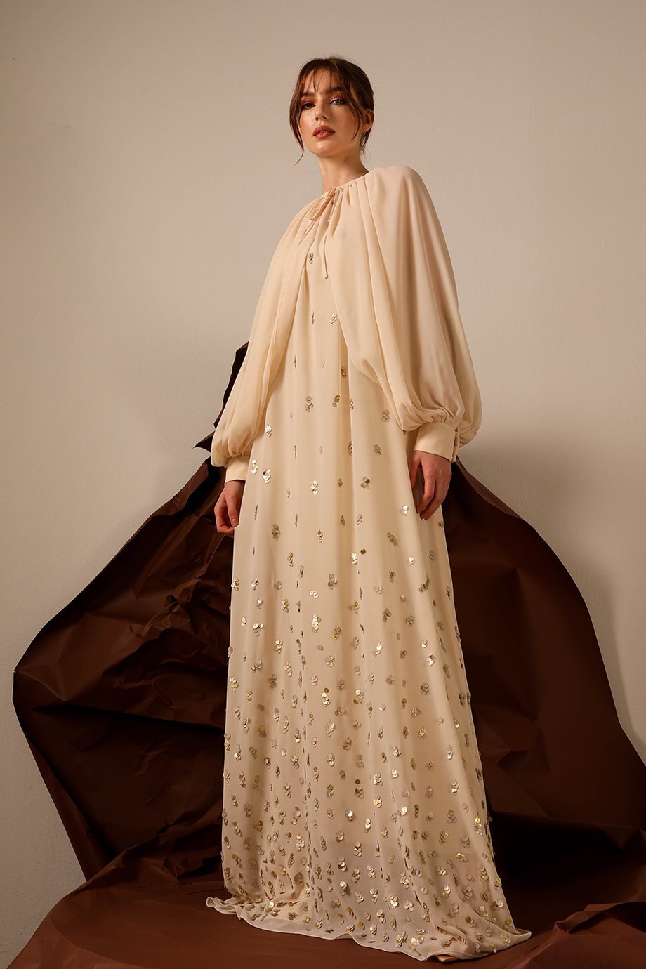 From weddings to cocktail parties, this cape dress transitions effortlessly across occasions and seasons. Styled with a contemporary yet timeless silhouette, it serves as a statement piece with an approachable charm. Match it with your favorite accessories to create a look that turns heads and sparks conversations.