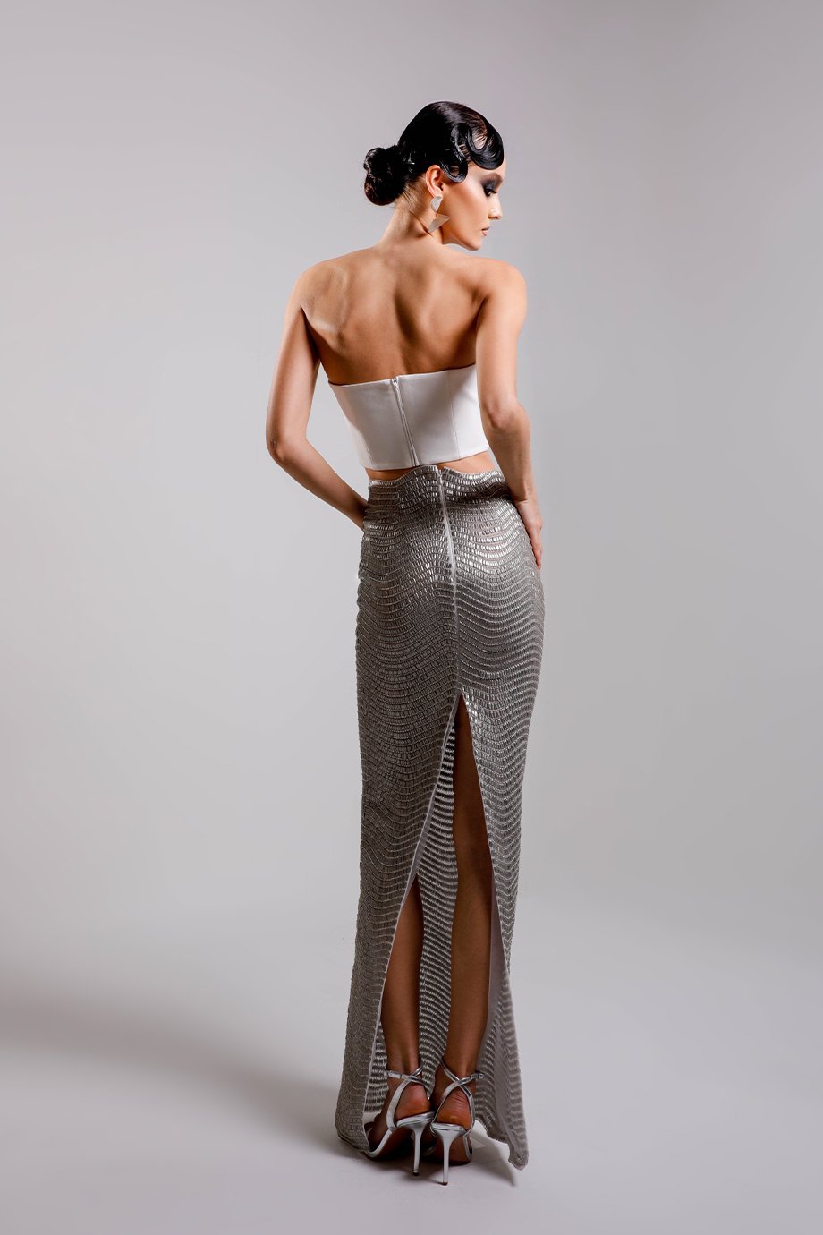 Introducing the stunning maxi dress that marries contemporary chic with classic sophistication. Featuring a sleek pencil-cut skirt and a corset-style bodice, this dress is thoughtfully designed to accentuate your natural curves while offering both comfort and style. Whether you’re attending an evening gala or a formal celebration, this dress ensures you make a lasting impression.