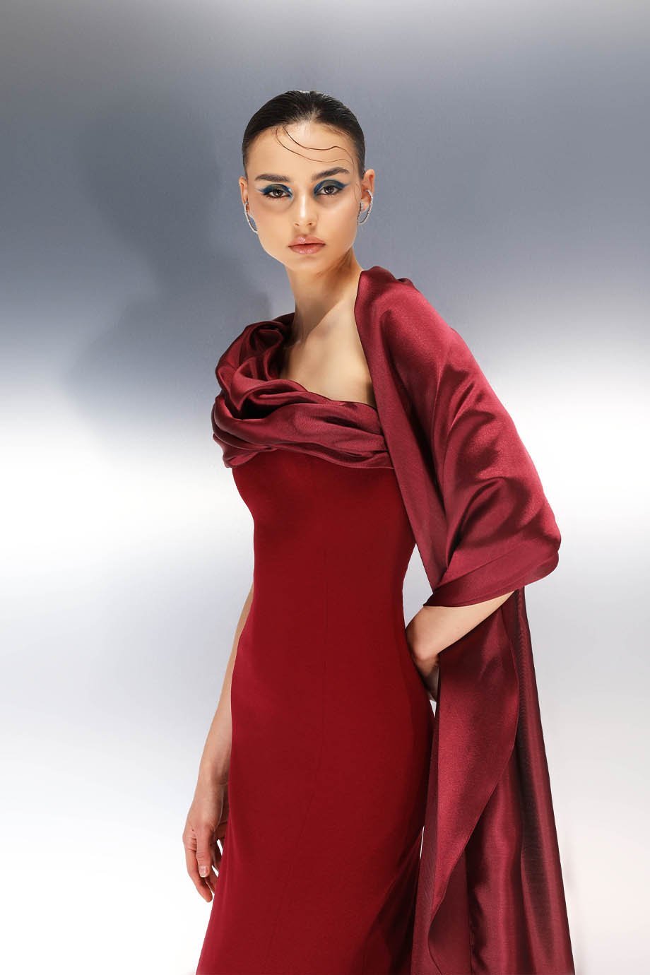 Step into sophistication and grace with our exquisite Lycra crepe sheath evening-length dress, designed to make you feel effortlessly elegant for any special event. This piece combines contemporary design with unparalleled craftsmanship, making it the perfect choice for those unforgettable nights.